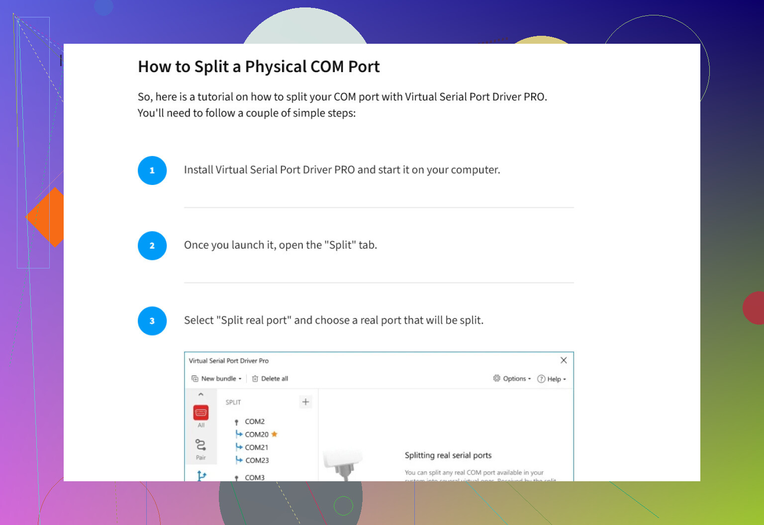 Bottom line: skip the physical split, com0com if you’ve got lots of patience (or a thing for pain), and for anything professional, just grab something built for splitting, like Virtual Serial Port Driver. If you want a quick start, check out download reliable COM port splitting solutions here. If someone claims “just use regedit!”—they probably also sell bridges.