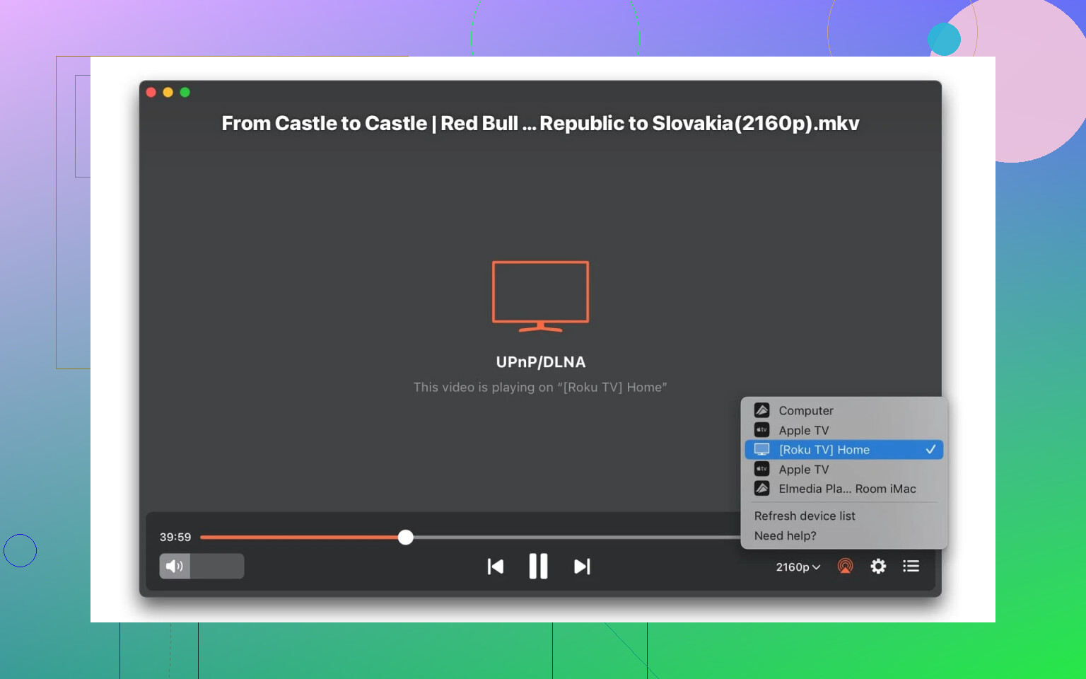 If you just want “click, play, appear on TV” without learning network engineering, Elmedia Player is honestly a strong bet (not gonna fully repeat @mikeappsreviewer, who’s basically Elmedia’s unpaid hype man, but he’s not wrong). Unlike, say, VLC’s periody half-baked cast features, Elmedia is as close to plug-and-play as this cursed workflow can get. And unlike AirPlay, your TV doesn’t have to be from some specific Silicon Valley aristocracy—DLNA, Chromecast, Roku, it’ll try anything once.