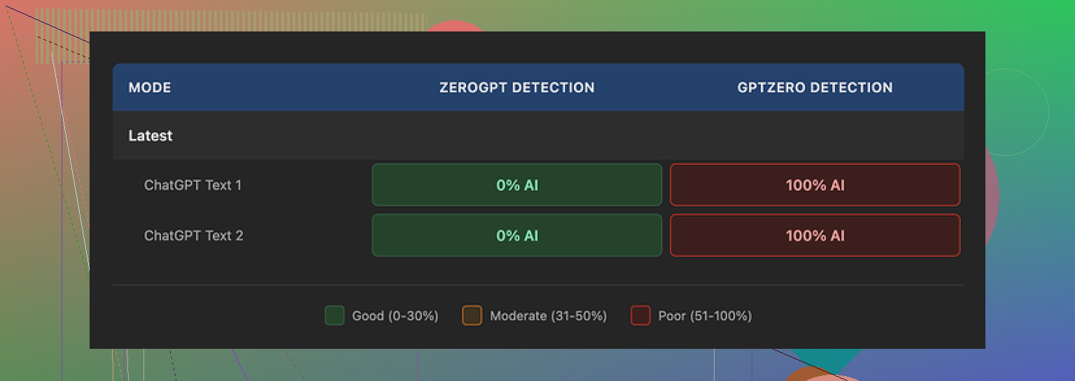 • You rely on detectors similar to ZeroGPT, not GPTZero