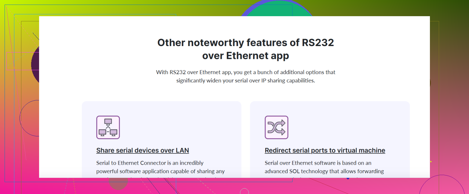 For anyone looking to try Serial to Ethernet Connector, just grab it from get started with Serial to Ethernet Connector now. Super straightforward download and install.