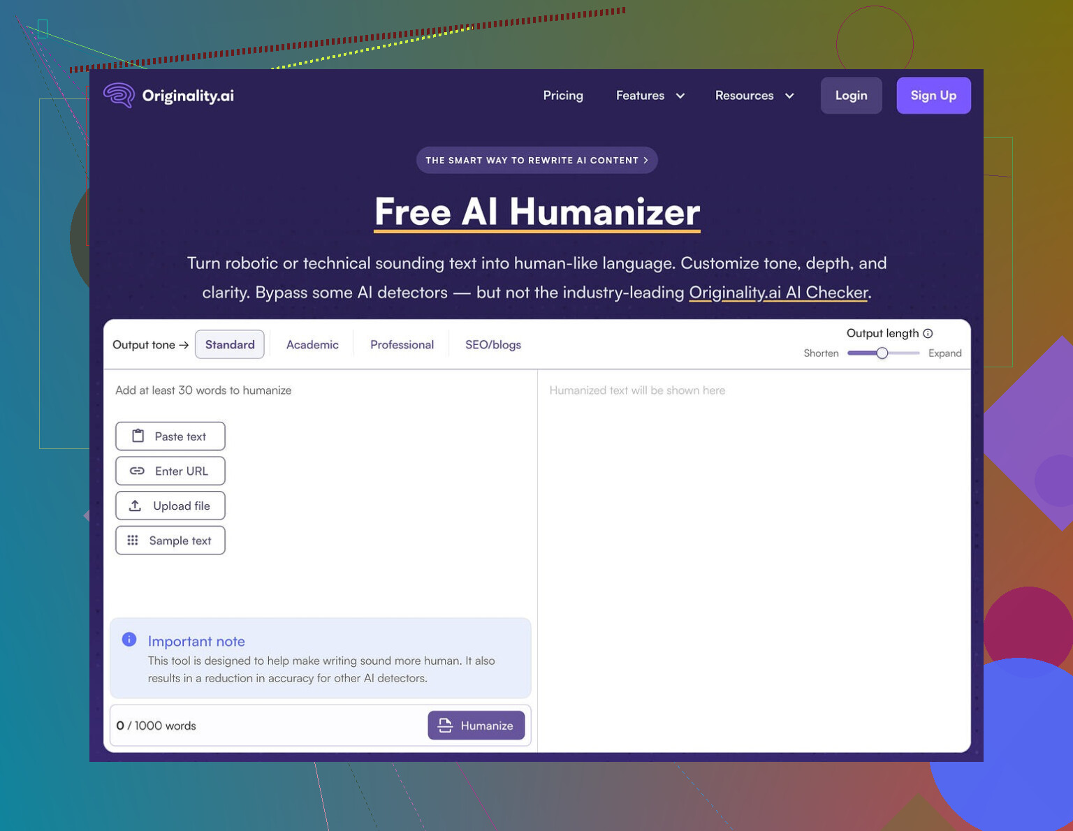 As a funnel into Originality’s paid detection services, it makes sense for them. As an actual humanizer, it did not help me at all with detection bypass.