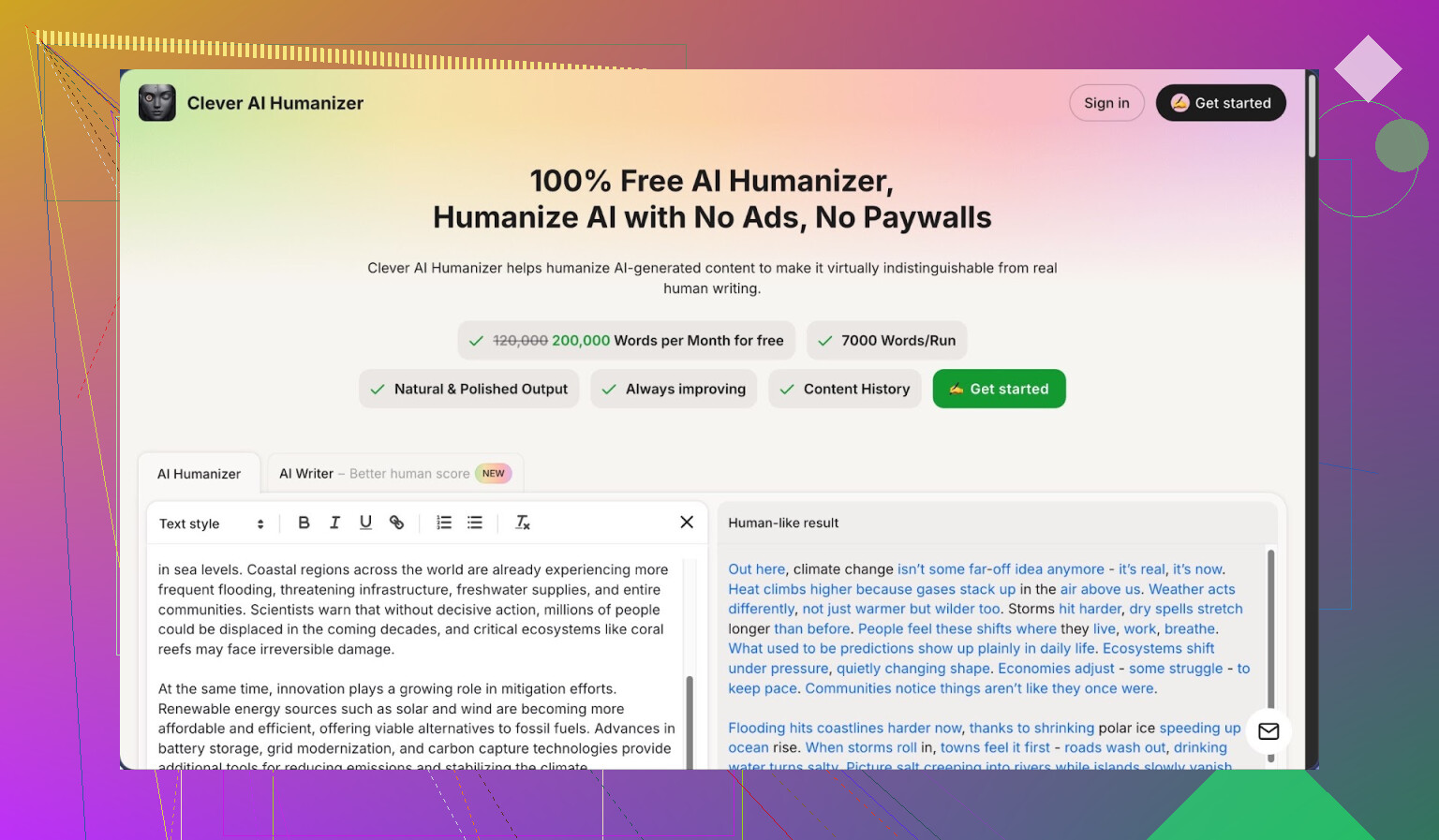 Out of everything I tried, Clever AI Humanizer ended up as the tool I kept open in a pinned tab. Not because it is perfect, but because it hits the only combination that matters: